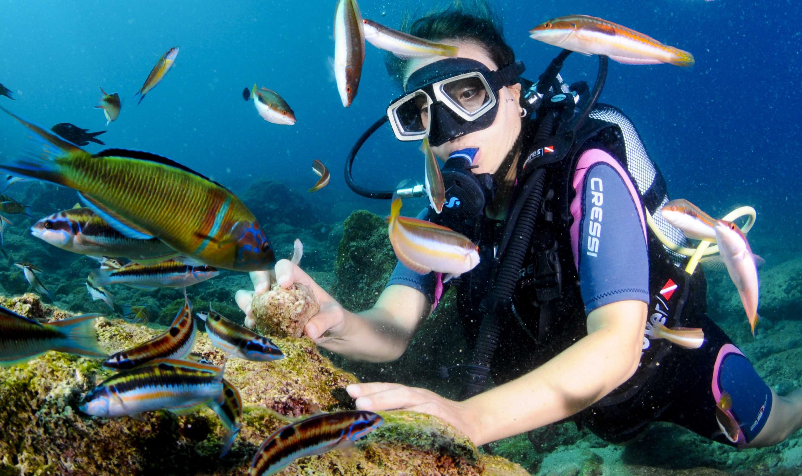 Küçük Ada'daki dalış noktası yaklaşık 5m ila 40m derinliğindedir. Burada amforalar, küçük mağaralar ve büyük su altı kayalıkları ile güzel ve rahat bir dalış yapabilirsiniz. Bir ahtapot veya ıstakoz görmek için her zaman kayaların çatlaklarına bakmayı hak eder.